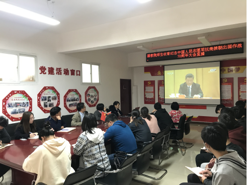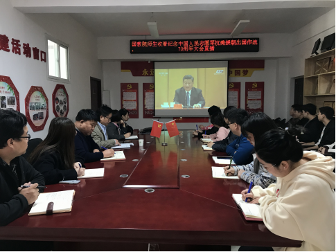 当日上午10点,国际教育学院组织部分师生在SY5503会议室集中收看纪念中国人民志愿军抗美援朝出国作战70周年大会直播盛况,学习习近平总书记重要讲话精神。此外,我院其他师生也通过电视、网络媒体等形式进行收看,并通过网络群平台展开热议讨论,纪念中国人民志愿军抗美援朝70周年,向志愿军战士致敬。