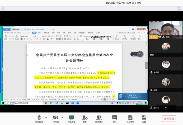 2020年4月14日下午,国际教育学院在腾讯会议上召开了政治理论学习会,学习《十九届中央纪律委员会第四次全体会议精神》(以下简称《全会精神》),学院全体教职工参加,会议由院党总支书记楚万强主持。