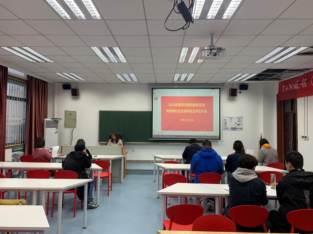 根据校党委《关于召开2020年度基层党组织组织生活会和开展民主评议党员的通知》(黄院组〔2021〕3 号)要求,2021年3月24日下午,国际教育学院学生支部在JX7401召开了2020年度组织生活会及民主评议党员大会,支部全体党员参加,会议由支部书记曹睿主持。
