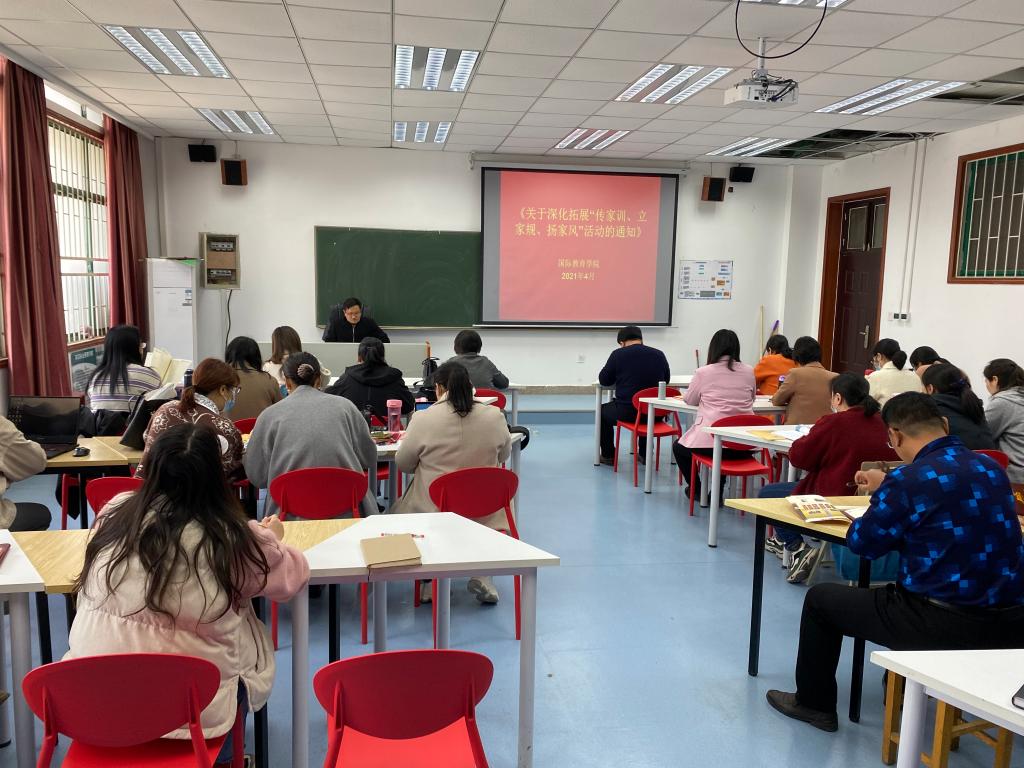 在会上,楚万强对所有教师提出了三点要求。一是提高思想认识,深化新时代文明家庭建设的核心思想。二是加强活动宣传,充分发挥融媒体和网络传播的优势推进文明家庭建设。三是发挥家庭主体作用,为传承中华民族传统美德,弘扬社会主义核心价值观作出表率。楚万强强调,学院全体教职工要高度重视深化拓展“传家训、立家规、扬家风”活动,充分认识到家庭文明建设的重要性,担负起责任,切实把家庭文明建设摆上日程。在保证家庭和谐的基础上,也要重视学院和谐之风。结合学校的总体活动安排,创新开展各项活动,将其作为推动社会主义核心价值观落细落小落实的有效途径,作为深化新时代文明家庭建设的重要抓手,切实把各项主题活动落到实处、抓出成效。