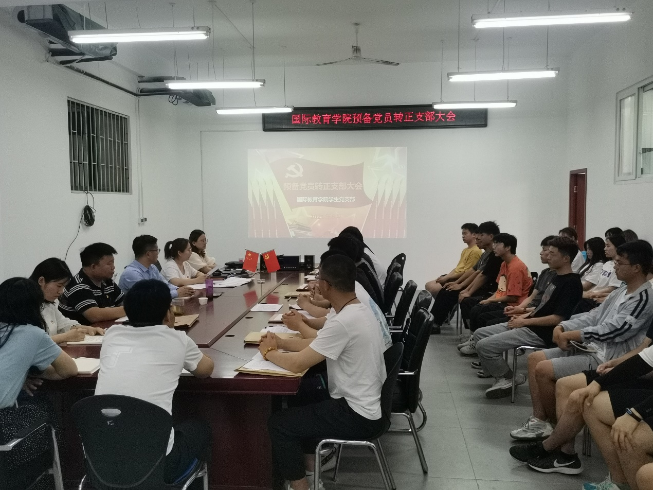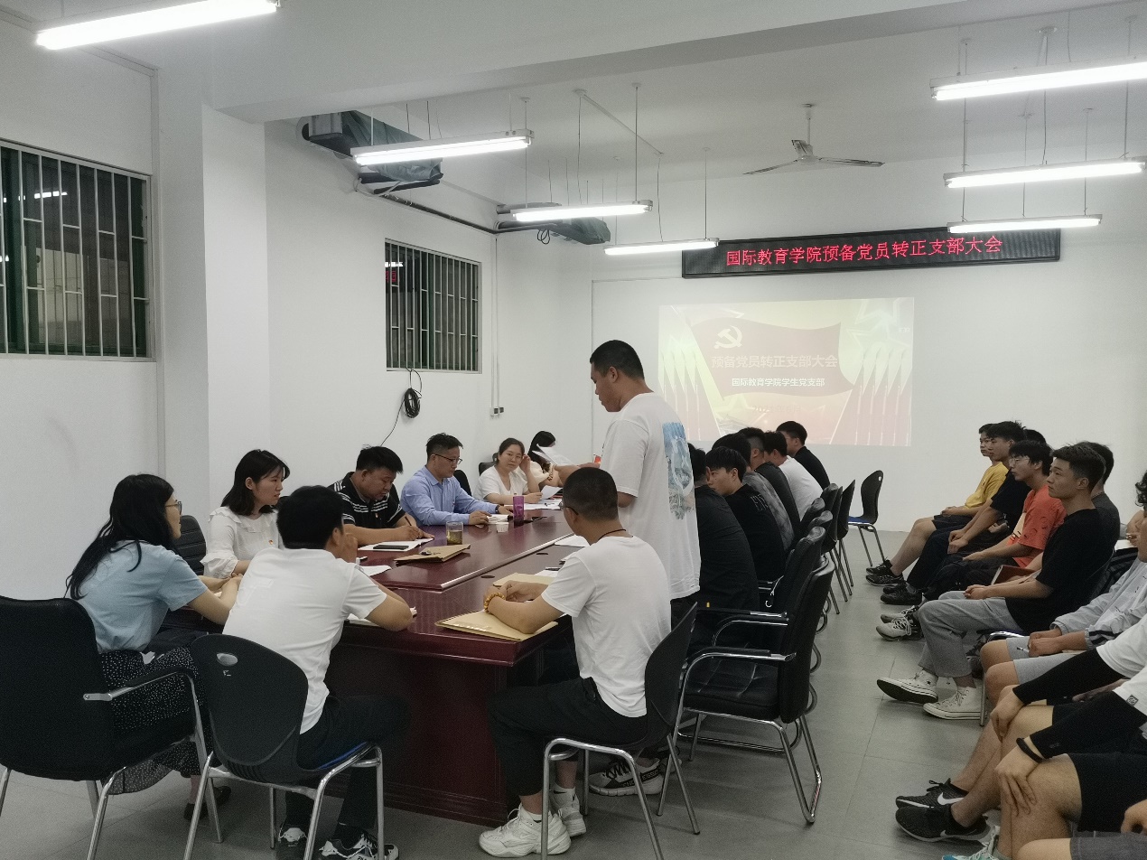 2021年6月10日下午,学生国际教育支部在JX7408召开2021年上半年预备党员转正支部大会。党总支书记楚万强、副书记王成伟、学生支部书记曹睿、支委委员、支部党员教师、预备党员、发展对象出席会议,本次会议由支部书记曹睿同志主持。