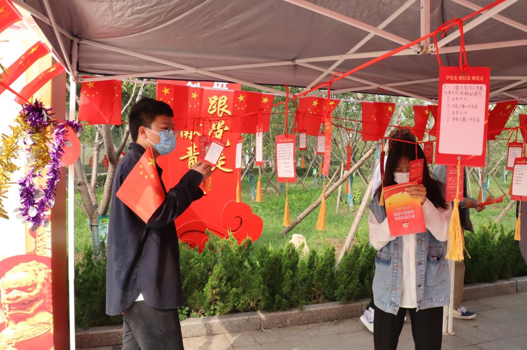 国庆节当日,国际教育学院在扬帆广场开展了“百年党史青年学,喜迎国庆颂党恩”学党史答题活动,学院党总支副书记王成伟、分团委书记曹睿出席,学校2021级新生积极参与。