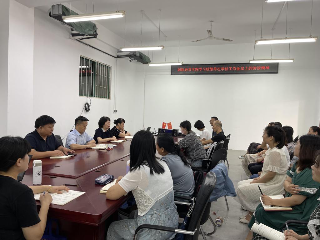 9月14日下午,国际教育学院在JX7408会议室召开政治理论学习会,学习周保平书记、胡昊校长在学校工作会议上的讲话精神,全体教职工参加。会议由院长王爱琴主持。