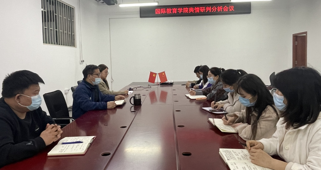 4月7日下午,国际教育学院在JX7408会议室召开舆情研判分析会,全院行政人员参加。会议由党总支书记楚万强主持。