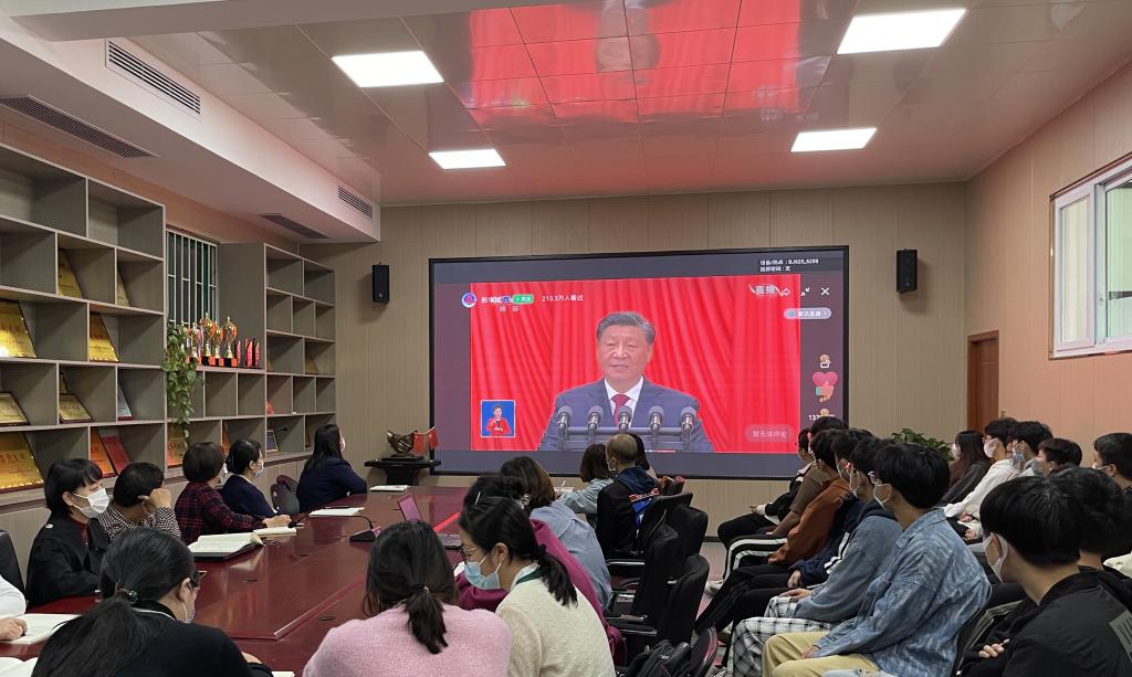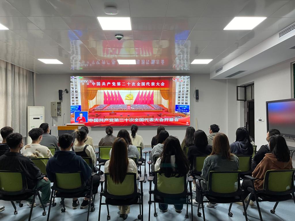 10月16日上午10时,中国共产党第二十次全国代表大会在北京人民大会堂隆重开幕。习近平总书记代表第十九届中央委员会向党的二十大报告。国际教育学院组织全体教师党员、学生党员、学生干部以及青年学生代表在JX7408会议室和JX7407会议室集中收看开幕会,认真聆听报告并发表热议。其余教职工、青年学生通过电视直播、线上直播的形式自行收看。