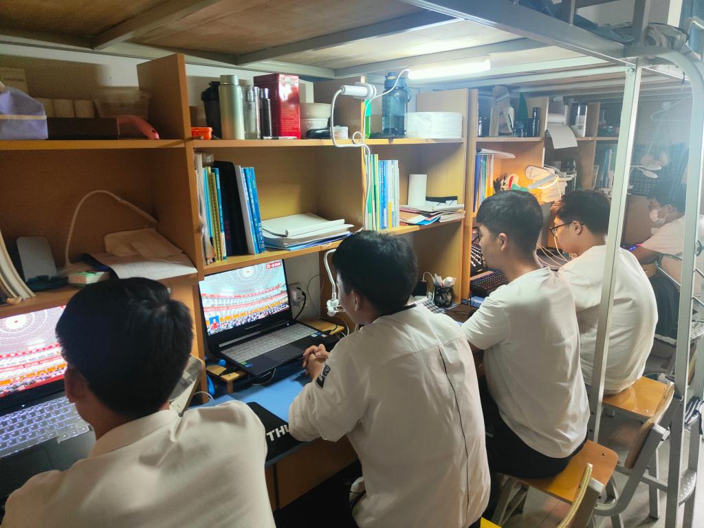 青年学生在宿舍收看大会实况