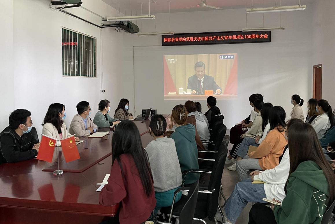 5月10日上午,庆祝中国共产主义青年团成立100周年大会在北京人民大会堂隆重举行,中共中央总书记、国家主席、中央军委主席习近平出席大会并发表重要讲话。国际教育学院师生代表在JX7408会议室观看大会盛况,其余学生以团支部为单位在线上观看大会直播盛况,认真聆听习近平总书记在大会上的重要讲话。