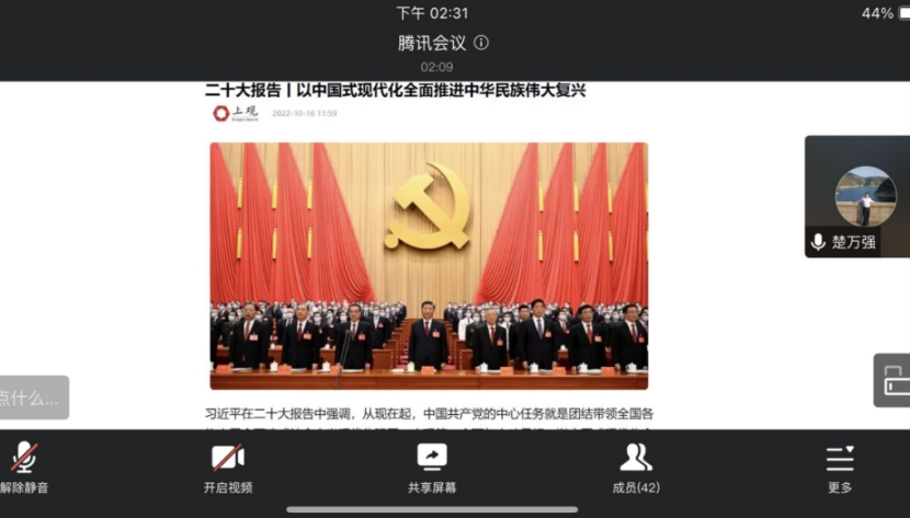 楚万强要求,一是要提高学习积极性,深刻理解党的二十大精神。党的二十大为新时代新征程党和国家事业发展,为实现第二个百年奋斗目标确立了行动指南,是我们党开启新征程、续写新篇章的政治宣言和行动纲领。二是要提升学习的自觉性,弄通弄懂党的二十大精神。学习党的二十大精神是一项重要的政治任务,党员干部增强学习的责任感、紧迫感,紧紧围绕报告原文,坚持个人自学和集体学习、线下学习和线上教育相结合,要主动在学懂弄通上下工功夫。三是要学习理论联系实际,践行党的二十大精神。党员干部把学习贯彻党的二十大精神内化为干事创业的动力,立足自己的本职岗位,围绕学校中心任务,坚持问题导向,为学校发展做出更大贡献。