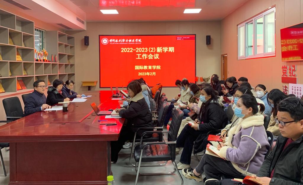 2月17日上午,国际教育学院在JX7408会议室召开2023年春季学期工作会,学院全体教职工参加,会议由党总支书记楚万强主持。