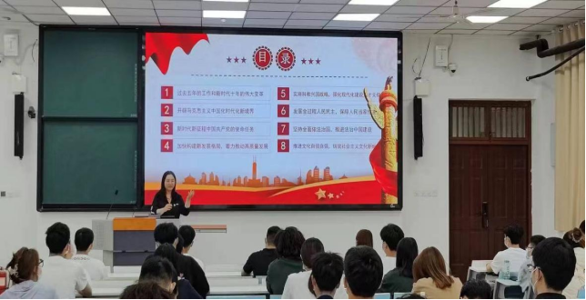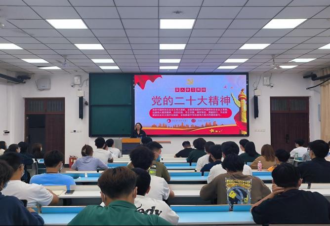5月20日下午,学生国际教育党支部书记曹睿在JX6101教室为国际教育学院2023年上半年党校学员上党课,本期党校全体学员参加。
