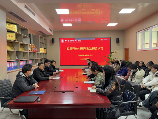 2023年12月26日下午,国际教育学院在JX7408会议室召开政治理论学习会,全体教职工参加,会议由教工国际教育党支部书记张科峰主持。