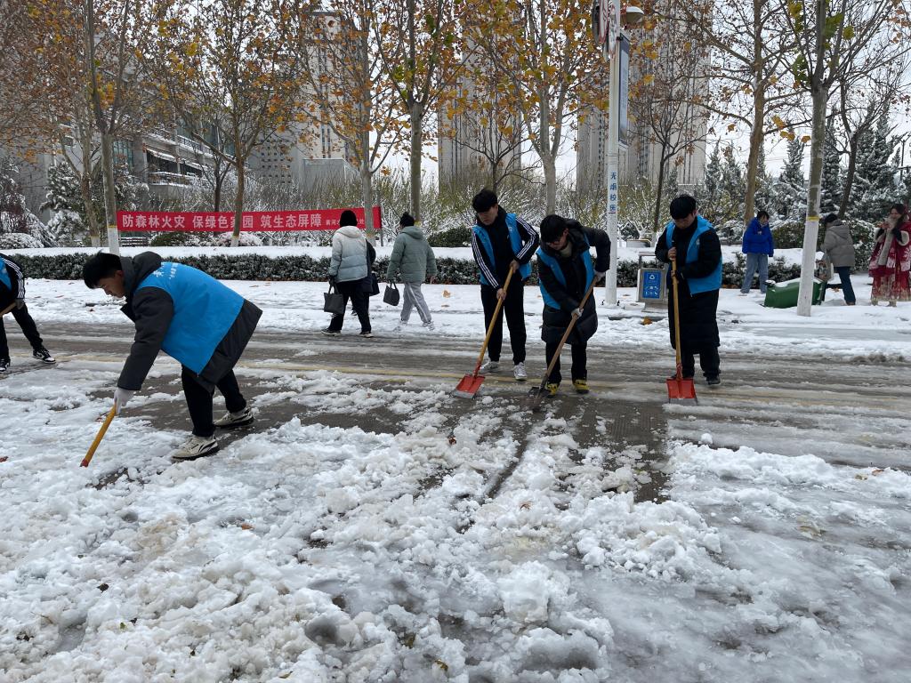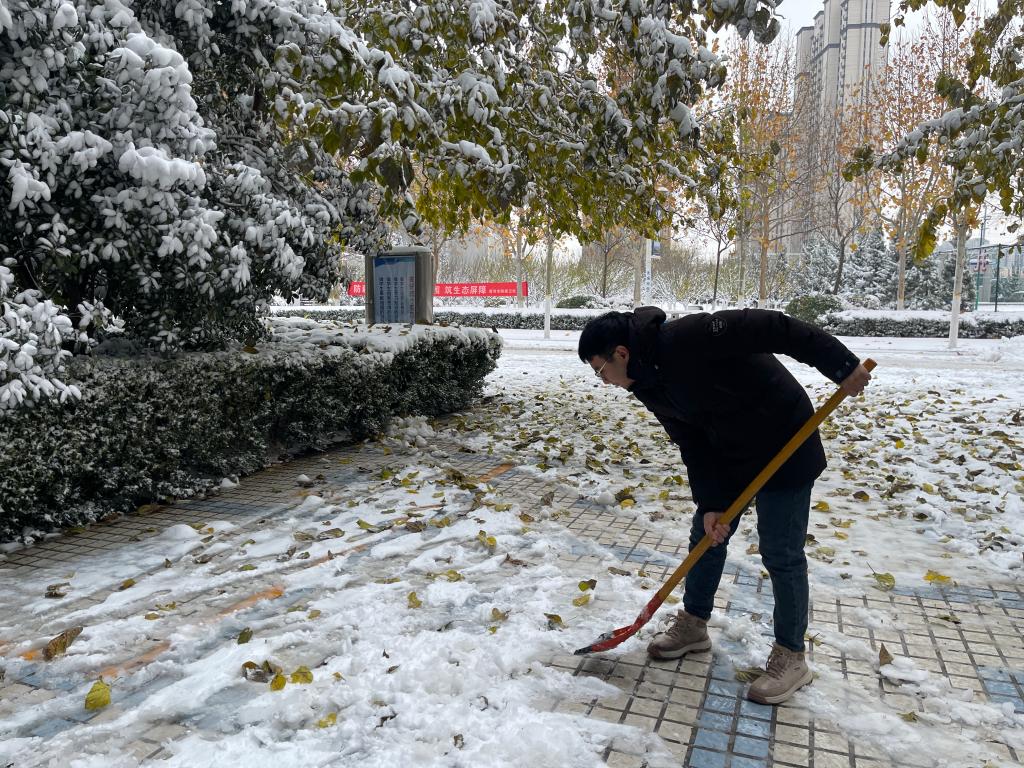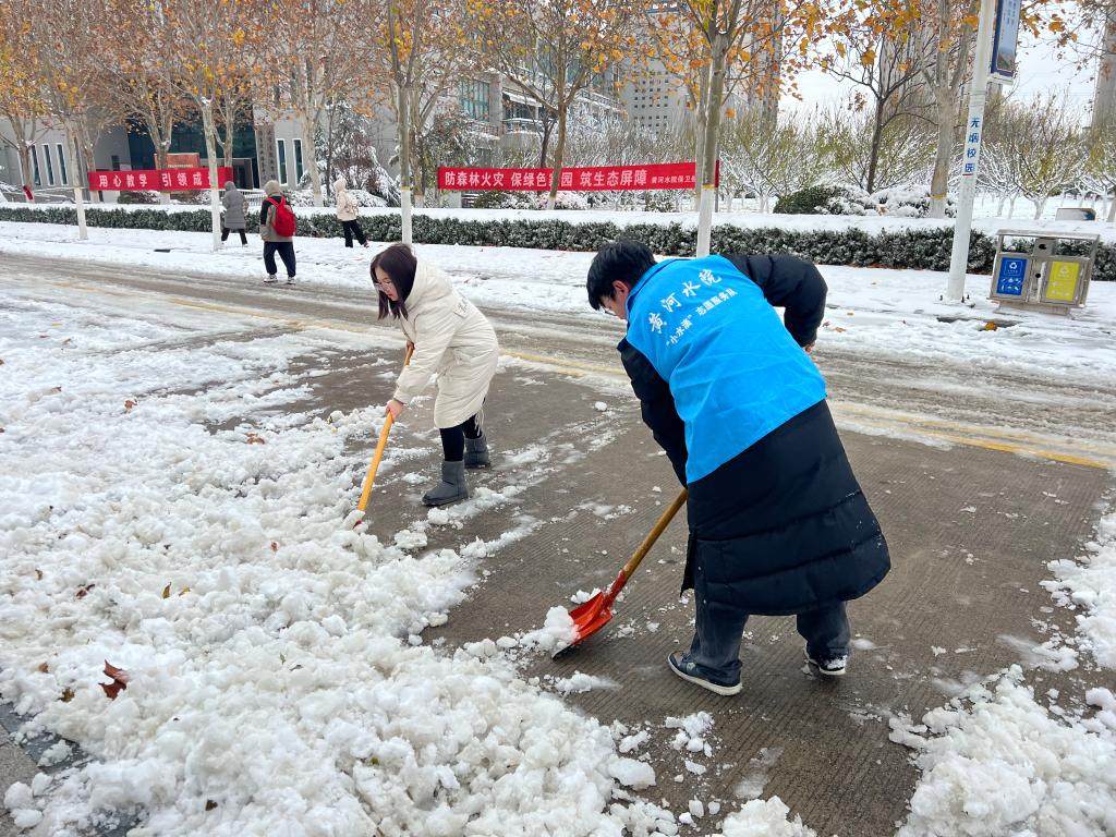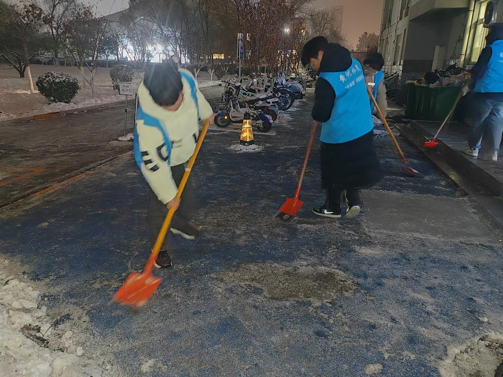图3为学生志愿者在教学楼东侧大路上清理积雪