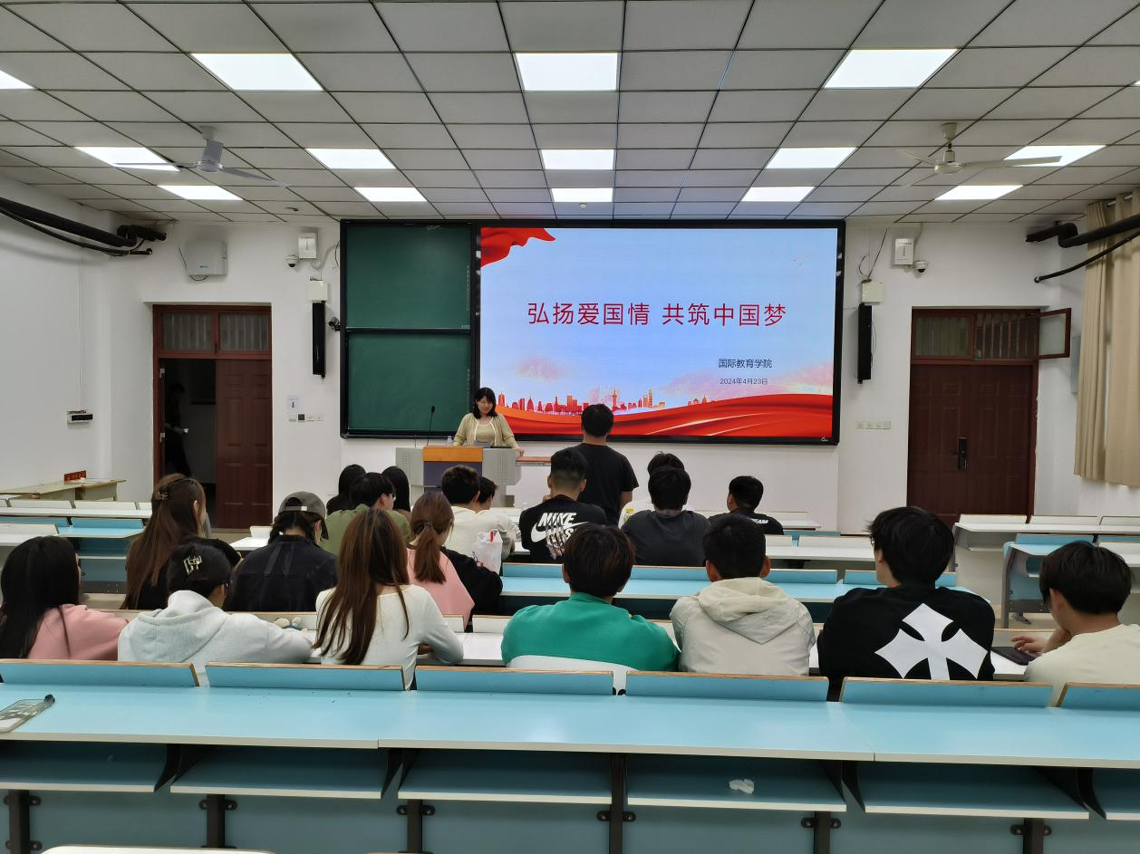 为进一步引导广大青年学生厚植爱国主义情怀,国际教育学院围绕“弘扬爱国情,共筑中国梦”为主题,组织开展形式多样的爱国主义教育系列活动:召开“弘扬爱国情,共筑中国梦”和“新时代爱国主义教育”主题班会,组织观看红色电影,进一步加强学生爱国主义教育,传承红色基因,激发爱国情怀,为实现中华民族伟大复兴而努力奋斗。