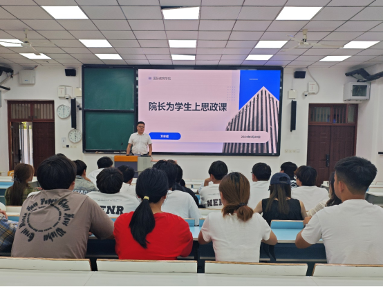 2024年5月28日下午,国际教育学院院长卫宗超在JX6103教室为学生上《感悟人生 提升价值 走向世界》专题思政课,国际教育学院学联组织负责人及学生干部积极参加。