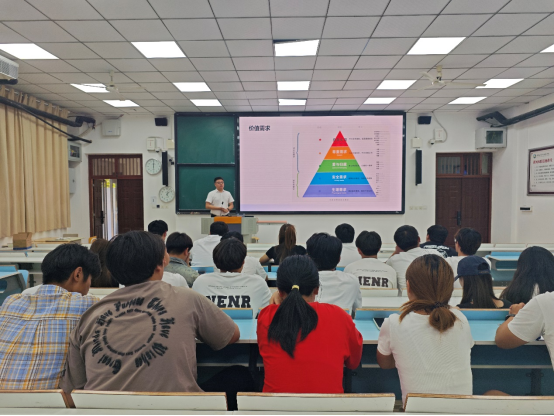 思政课中,卫宗超院长首先列举有代表性的人生观为切入点,与同学进行互动,引导同学们树立正确的价值取向。并围绕“感悟人生、提升价值、走向世界、畅想人生”四个方面与同学们进行了分享交流。他通过“马斯洛需求层次理论”“MBTI十六型人格分析”“多元智能理论”等理论详细地阐述了目标决定人生、需求决定价值、视界决定世界,并结合自身经历激励同学们用心感悟人生、提升自我价值,进一步拓宽视界、走向世界。让同学们深刻感悟到人生不仅是一段旅程,更是一个不断感悟、成长和超越自我的过程,同学们应该珍惜时光,不断充实自己,为实现人生价值而不懈努力。最后,卫院长寄语同学们在以后的日子里做好个人规划、有条不紊地开展各项学习与工作、学会灵活变通、做性情通达、目的明确的新时代青年,进而实现人生价值。