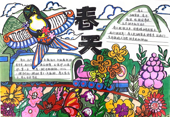 同学们踊跃参加,走进大自然,用多彩的画笔去描绘春天。每一张手抄报,从设计到排版,从书写到绘画,图文并茂,各具特色。