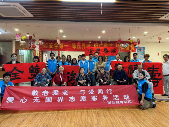 为弘扬尊老敬老的传统美德,让老人们感受到温暖与关爱。2024年10月15日下午,国际教育学院分团委组织师生志愿者来到开封市泰邦健康公寓开展“敬老爱老,与爱同行”志愿服务活动。院党总支书记楚万强、学生国际教育支部部分党员教师,以及院学联组织实践部成员参与此次活动,留学生安卓、雷诺、雷蒙、洪媛媛、苏妙之等也积极参与到此次志愿服务活动之中。