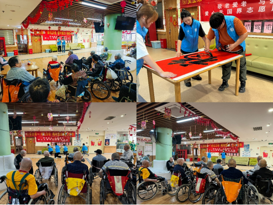 活动现场,志愿者们精心准备了精彩的节目表演,如唱红歌、跳舞、留学生武术表演、现场书写书法等,为老人们带来了无尽的欢乐,现场氛围热烈浓厚。在最后的手工环节中,志愿者们与爷爷奶奶们一起捏泥人,做玫瑰花,叠手工折纸,陪老人聊天,亲切地拉着爷爷奶奶们的手,耐心地听他们讲曾经的岁月。