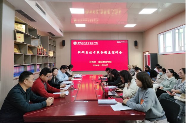 11月26日下午,科研与技术服务制度宣讲会在国际教育学院第一会议室召开。科技处副处长戴玉、聂大勇,国际教育学院领导班子和全体教师参加会议。会议由国际教育学院院长卫宗超主持。