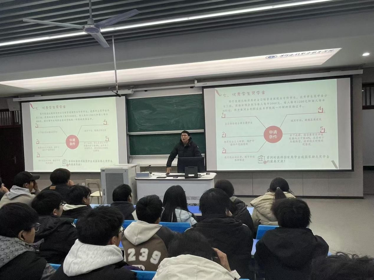 辅导员们先是详细介绍了国家对于家庭经济困难学生的资助体系,涵盖了助学金、奖学金等多种形式。国家助学金会根据不同的困难等级为同学们提供相应的资金帮扶,助力大家安心学习、减轻生活压力。在讲解奖学金部分时,老师着重强调了不仅成绩优异能获得奖励,在综合素质、社会实践等方面表现突出同样有机会争取,鼓励同学们全面发展。随后,老师们又耐心地为同学们解读了助学贷款相关政策,从申请条件到办理流程,一一细致说明,让有需要的同学明晰该如何操作。同时,对于校内资助政策,如临时困难补助、勤工俭学岗位等,老师也做了全面地阐释,告诉同学们遇到突发困难时如何利用这些资源。