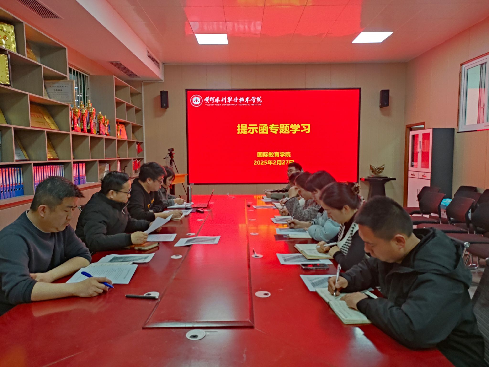 2月27日上午,国际教育学院在JX7408会议室召开《黄河水利职业技术学院媒体信息发布“三审三校”制度》专题学习会,学院科级以上干部参加会议,会议由学院党总支书记楚万强主持。