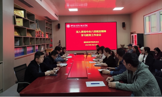 3月25日下午,国际教育学院在JX7408会议室组织召开专题工作会议,深入贯彻中央八项规定精神学习教育工作,会议由学院党总支书记楚万强主持。