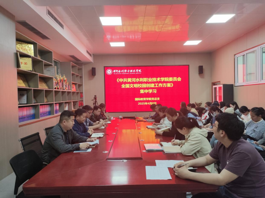 4月8日,国际教育学院在JX7408会议室召开专题会议,集中学习《中共黄河水利职业技术学院委员会2024年全国文明校园创建工作方案》。会议由学院党总支书记楚万强主持,学院全体教职工参加。