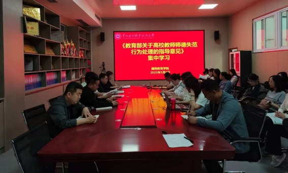 5月6日,国际教育学院在JX7408会议室召开师德师风专题会议,会议由学院党总支书记楚万强主持,学院全体教职工参加。
