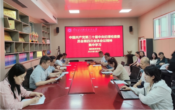 5月27日,国际教育学院在JX7408会议室召开专题理论学习。会上,学院党总支副书记赵巍领学中国共产党河南省第十一届纪律检查委员会第五次全体会议精神;学院党总支办公室主任王玉东领学中国共产党第二十届中央纪律检查委员会第四次全体会议精神。