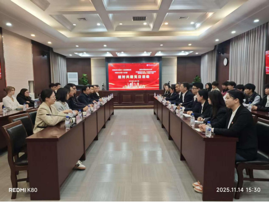为深入贯彻落实新时代党的建设总要求和新时代党的组织路线,深化党建示范创建与质量创优工作,充分发挥基层党支部的战斗堡垒作用和党员的先锋模范作用。2025年11月14日下午,国际教育学院教工国际教育党支部与学生国际教育党支部同中国化学工程第十一建设有限公司中原分公司第一党支部联合开展了以“党建联建聚合力,校企同心促发展”为主题的结对共建党日活动。双方党员代表共计20余人参加了此次活动。
