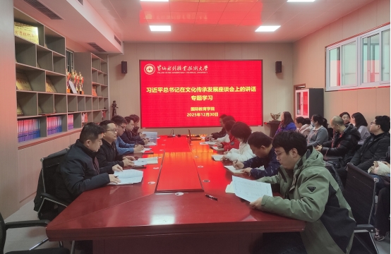 为贯彻落实《黄水2025年下半年政治理论学习及思想道德教育计划》学习要求,12月30日,国际教育学院组织教职工传达学习习近平总书记对宣传思想文化工作作出重要指示、习近平总书记在文化传承发展座谈会上的讲话和习近平文化思想学习纲要,引导广大师生进一步学懂弄通做实习近平新时代中国特色社会主义思想,深入学习贯彻习近平文化思想,更加深刻领悟“两个确立”的决定性意义,增强“四个意识”、坚定“四个自信”、做到“两个维护”,为以中国式现代化全面推进强国建设、民族复兴伟业而努力奋斗。