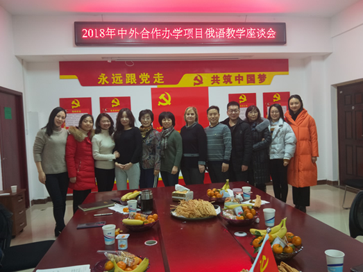 12月28日晚,国教院召开2018年中外合作办学项目俄语教学座谈会。参加此次座谈会的有,国际教育学院院长王爱琴、党总支书记楚万强、刘紫婷老师、三名俄方外教和六名中方俄语老师。