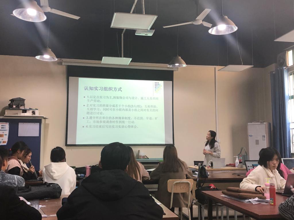 11月6日,国际教育学院2018环境艺术专业认知实习动员会在JX7511召开,本次会议由环艺教研室主任杨桦主持,国教院副院长郑瑾、校企合作主任沈冰、辅导员黄海燕及全体2018级环艺专业同学参加。