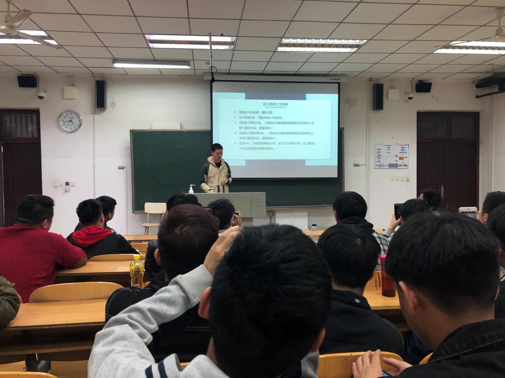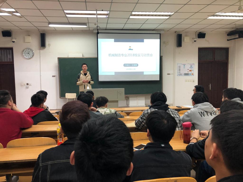 11月12日,国际教育学院机械设计专业2018级顶岗实习动员会在JX6203召开,本次会议由教研室老师王海博主持,国教院副院长郑瑾、校企合作主任沈冰、辅导员黄海燕及全体2018级机械设计专业同学参加。