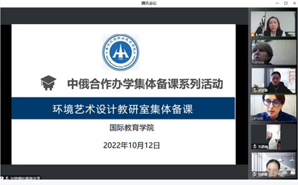 20221012日下午,中俄合作办学环境艺术设计专业教学研讨会在线进行。南乌拉尔大学建筑学院设计与美术教研室教授Лариса БорисовнаОльга Владимировна我校环境艺术设计教研室主任杨桦、 部分专业教师和俄语教师参加研讨会。