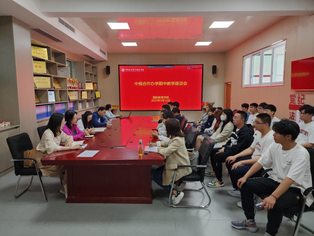 2023512日下午,国际教育学院中俄合作办学专业2022-20232)期中教学座谈会在JX7408召开。中俄合作办学道路桥梁工程技术、土木工程检测技术、环境艺术设计、机械设计与制造与电气自动化技术专业教研室主任、俄语教学团队教师以及学生代表参加座谈会。