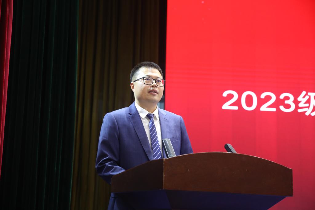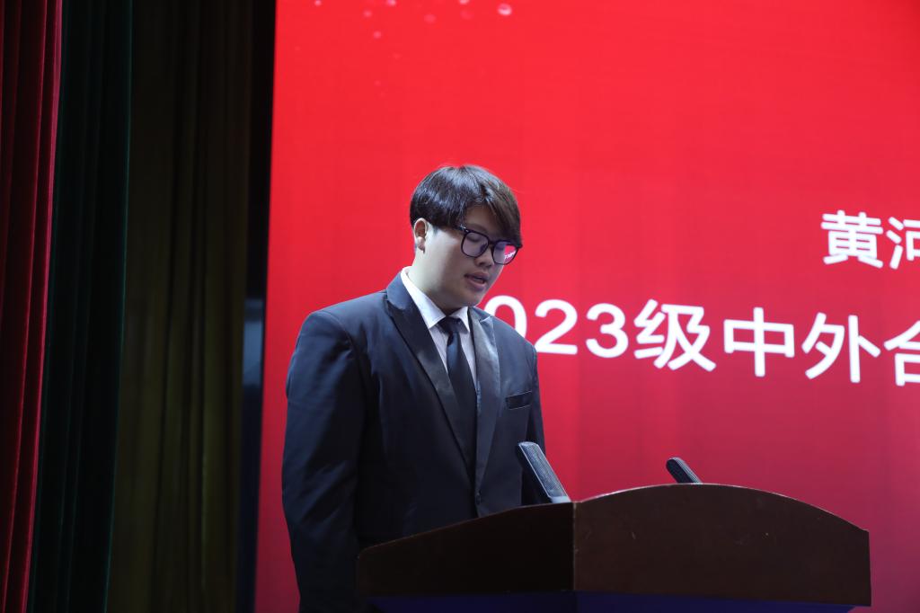 教师代表赵芳芳以自身的学习和工作经历勉励同学们心怀梦想,开拓视野,学好语言和专业,成为德才兼备、具有国际视野和创新精神的高素质人才。我校在韩国大邱大学交换学习的学生代表张纯通过视频分享了自己在黄河水院和大邱大学的学习生活,希望学弟学妹们提前规划大学生活,明确奋斗目标,勇于面对新的环境和挑战。新生代表陈乐乐发言,倡议2023级新生携手共进,做自己人生的掌舵者,承担起肩上的家国责任。