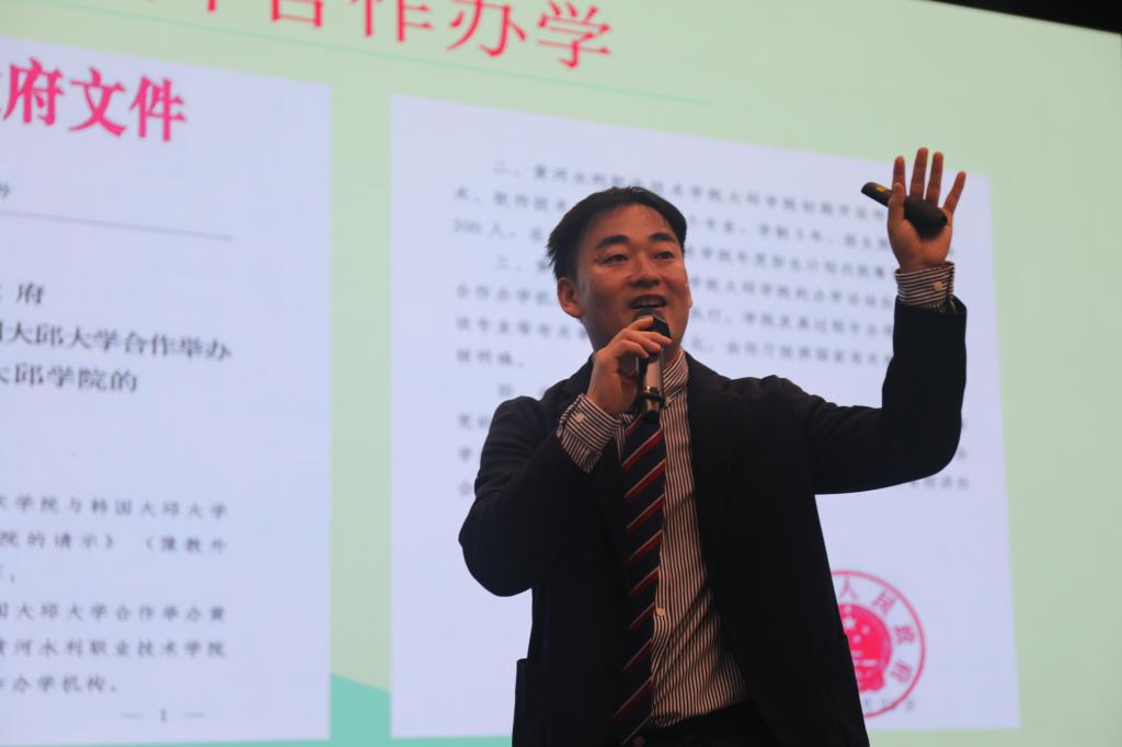 典礼结束后,大邱大学国际处主任孔大锡介绍了大邱大学办学条件,并与学生现场互动,气氛热烈。