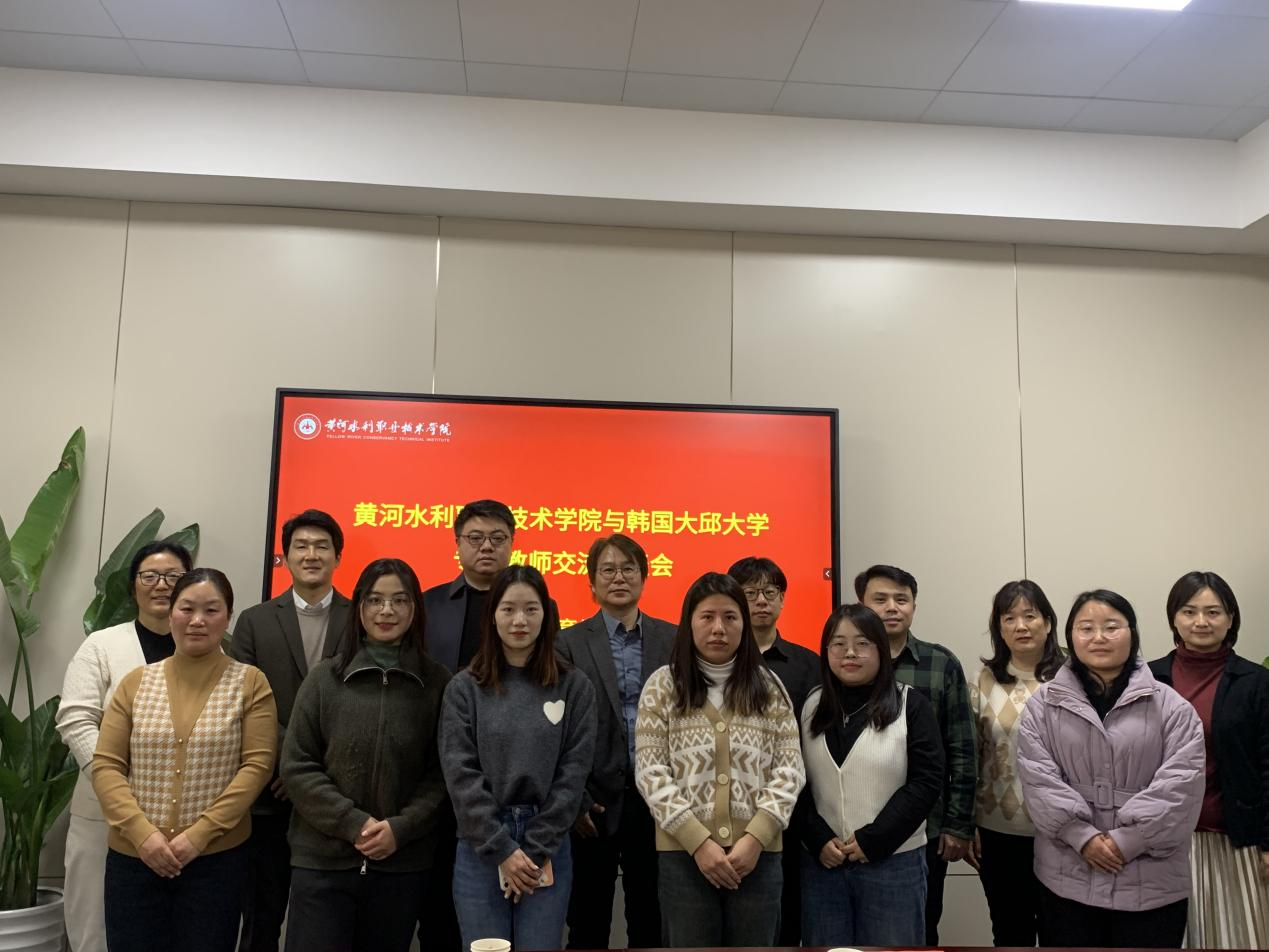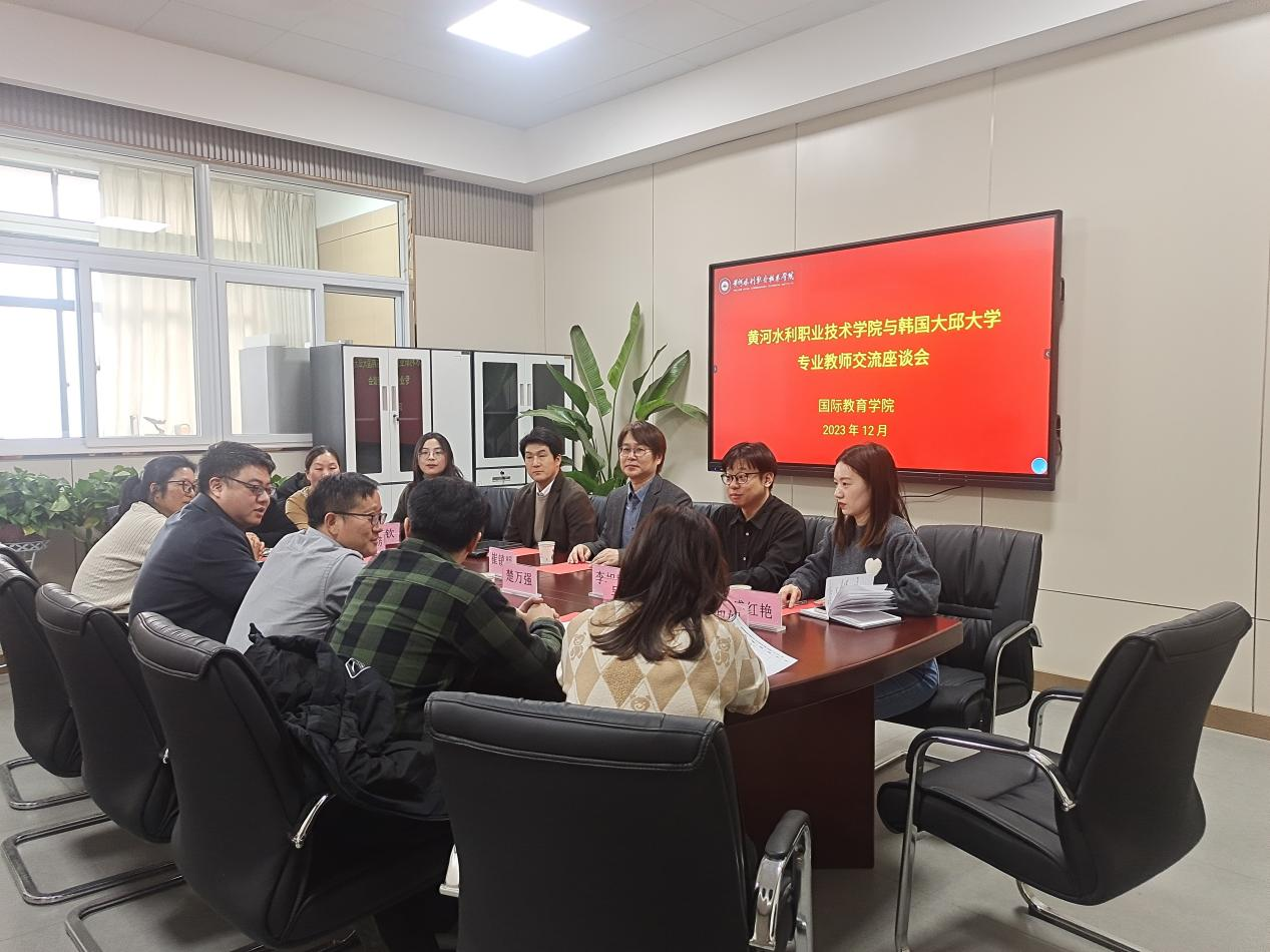 12月26日下午,国际教育学院在JX7408举办黄河水利职业技术学院与韩国大邱大学专业教师交流座谈会”,国际教育学院领导班子、中韩合作办学专业教研室教师代表、韩国大邱大学专业课教师韩语教学团队参加会议。