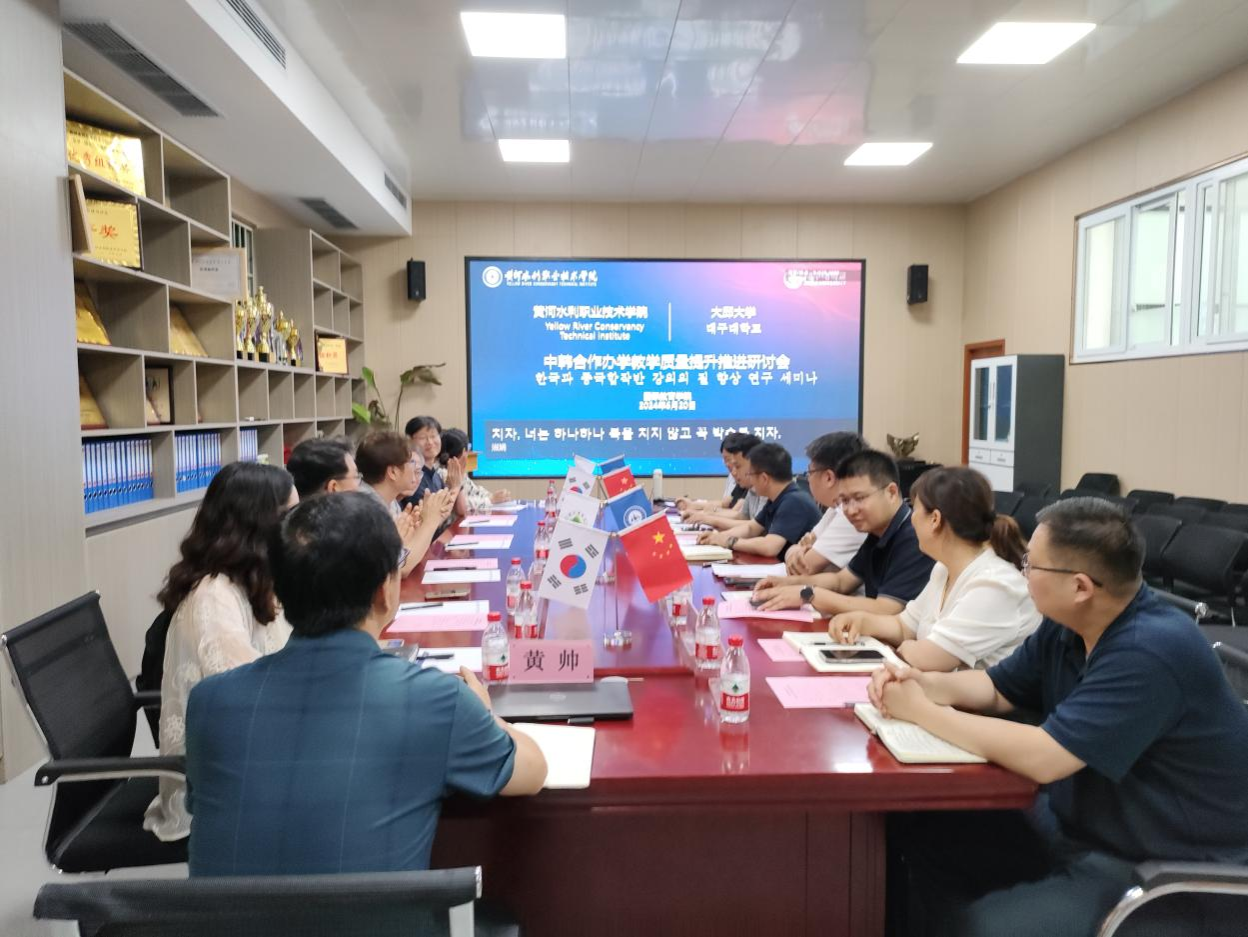 为深入探讨中韩合作办学专业的未来发展和人才培养策略,优化引进课程的合作教学模式,提升教学和人才培养质量。6月20日下午,国际教育学院召开中韩合作办学教学质量提升推进研讨会,商务与管理学院、环境工程学院、信息工程学院院长,及国际教育学院教学管理团队全体教师,韩国大邱大学的5位专业课教师参加了研讨交流,会议由国际教育学院副院长吴丰主持。