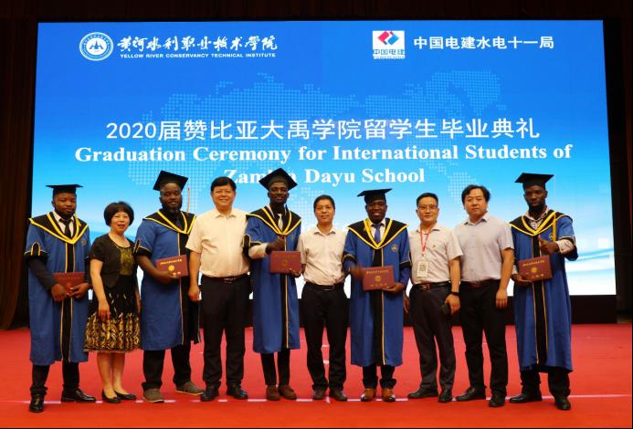 教师代表王晓岚嘱咐毕业生们未来成为讲好中国故事、传播中国声音的友好使者;大禹学院毕业生代表克里斯感谢学校的培养,表示将用在校所学的知识和技术服务赞比亚建设。随后,王爱琴宣读2020届留学生毕业名单,并颁发毕业证书。