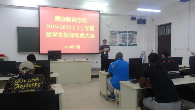 随后,全体留学生召开了复课动员大会,会上国教院党总支书记楚万强首先对演练情况进行点评,充分肯定了这次演练取得的成效,并就我院留学生的疫情防控工作进行总结。他指出,中国在最短时间,以最快速度,用最小的代价控制了疫情,保护了国家,保护了中国人民,保护了在华留学生;学校及国教院的老师尽心尽责,保证所有在校留学生的安全,为留学生提供生活上的必要帮助,像对待自己的孩子一样关心爱护留学生,使所有同学顺利度过了最艰难的日子。复学在即,他希望留学生珍惜在校时光,继续配合疫情防控工作,加强自我管理和自我保护,努力学习,不让家人担心。