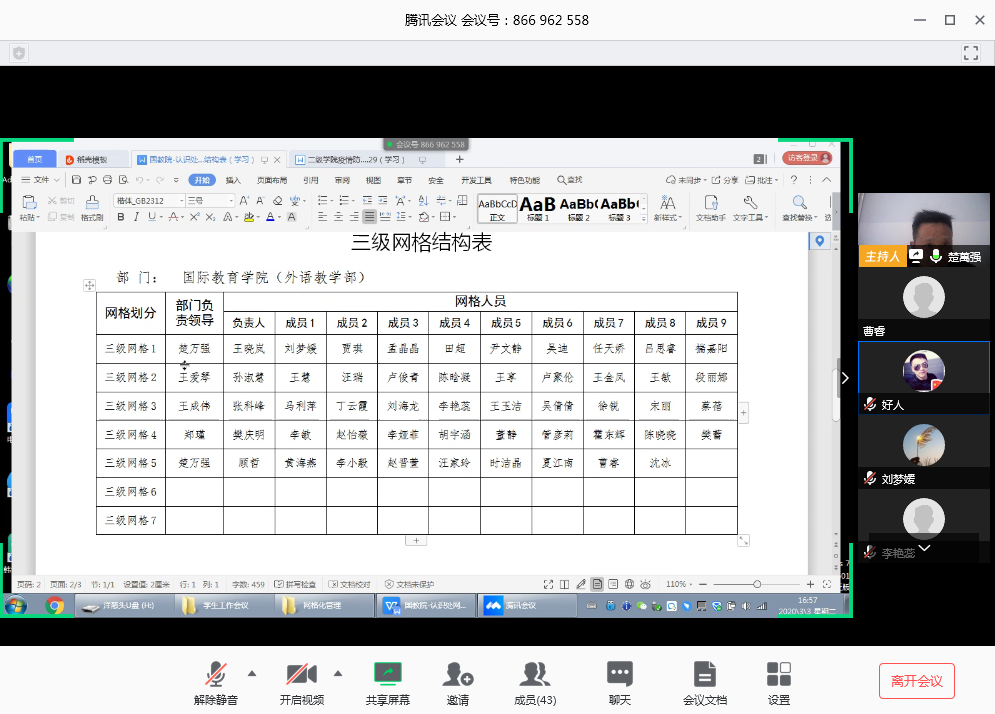 为进一步抓紧抓实抓细疫情防控工作各项任务,科学有序防控新冠疫情,充分发挥网格化管理的联防联控作用,确保开学后师生身体健康和生命安全,3月3日下午,国际教育学院召开了线上全体教职工大会,安排部署学院疫情防控网格化管理工作。会议由学院党总支书记楚万强主持。