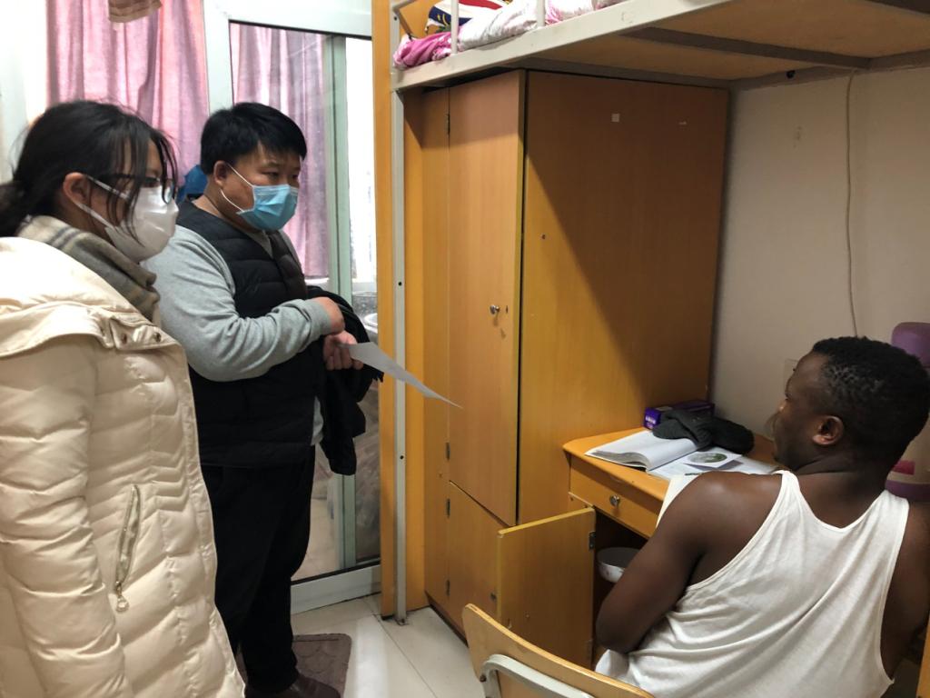 近日,国际教育学院留学生管理人员认真贯彻上级及学校关于做好新型冠状病毒疫情防控工作的部署要求,党总支副书记王成伟带领留学生班主任,全力以赴做好留学生疫情防控工作。