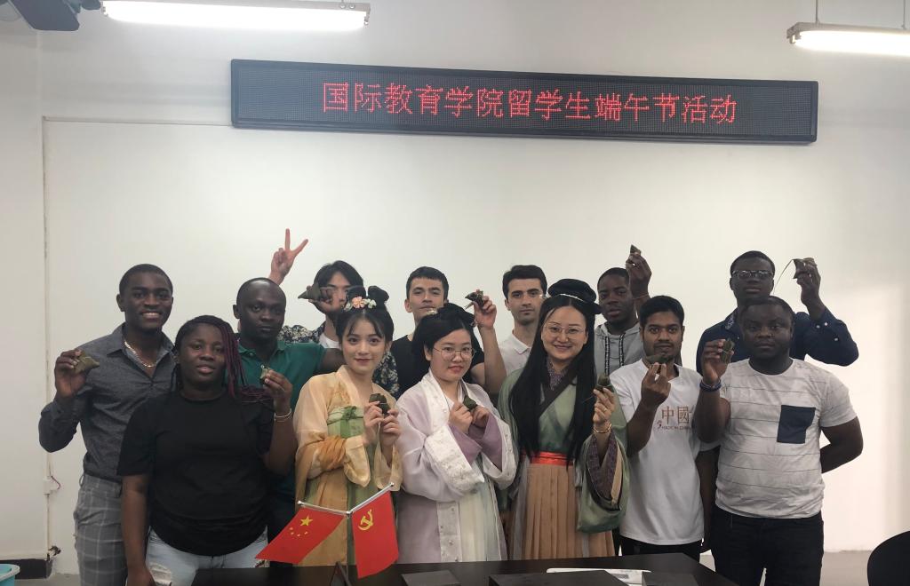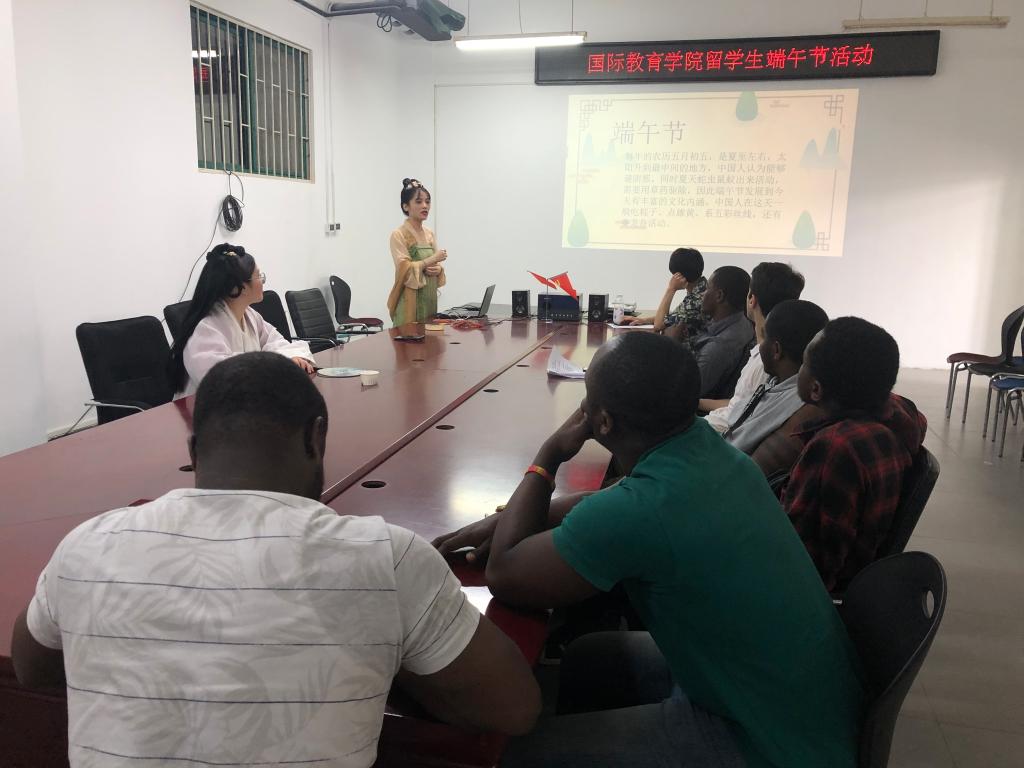 6月11日下午,我院在七号教学楼7408开展主题为“乐享端午,情系五洲”暨2021年来华留学生端午主题活动。此次活动由留学生班主任沈冰、汪家玲及留学生教师丁晓婷带领来自赤道几内亚、刚果(金)、老挝、孟加拉等国的留学生共同参加。