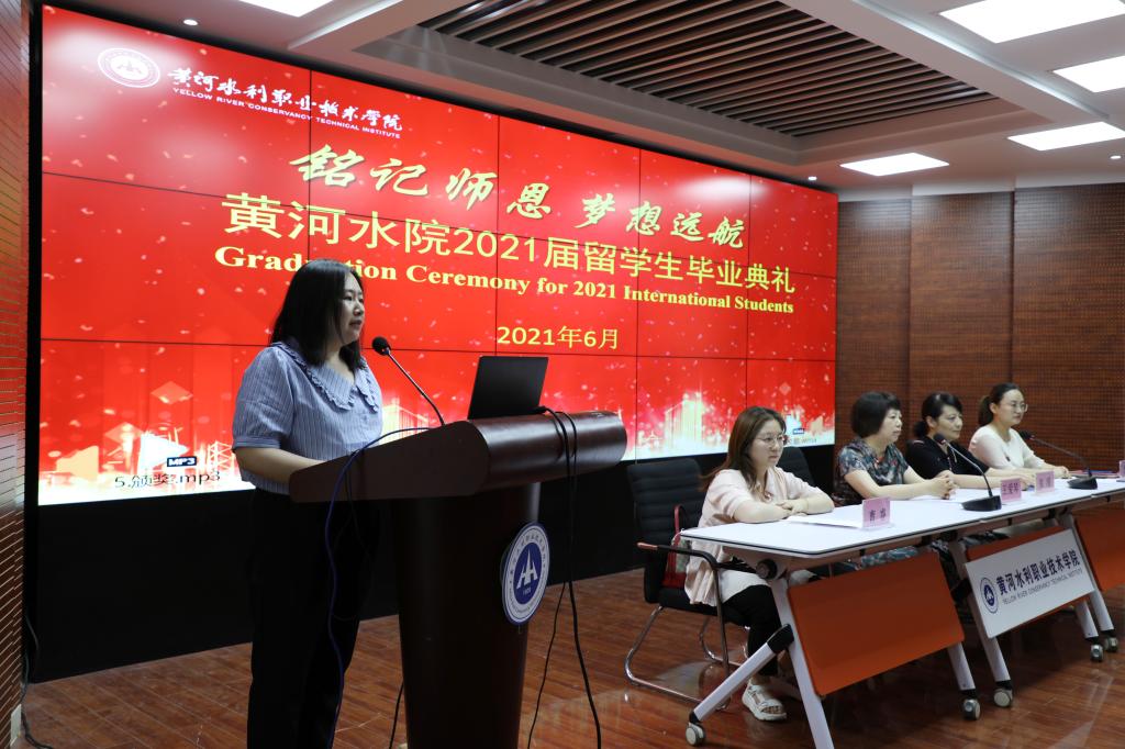 2021年6月24日下午,2021届留学生毕业典礼在四号实训楼多功能演播厅隆重举行。国际教育学院领导、任课教师、留学生班主任及2021届在校毕业生及2019、2020级在校留学生参加此次毕业典礼。典礼由国教院副院长郑瑾主持。