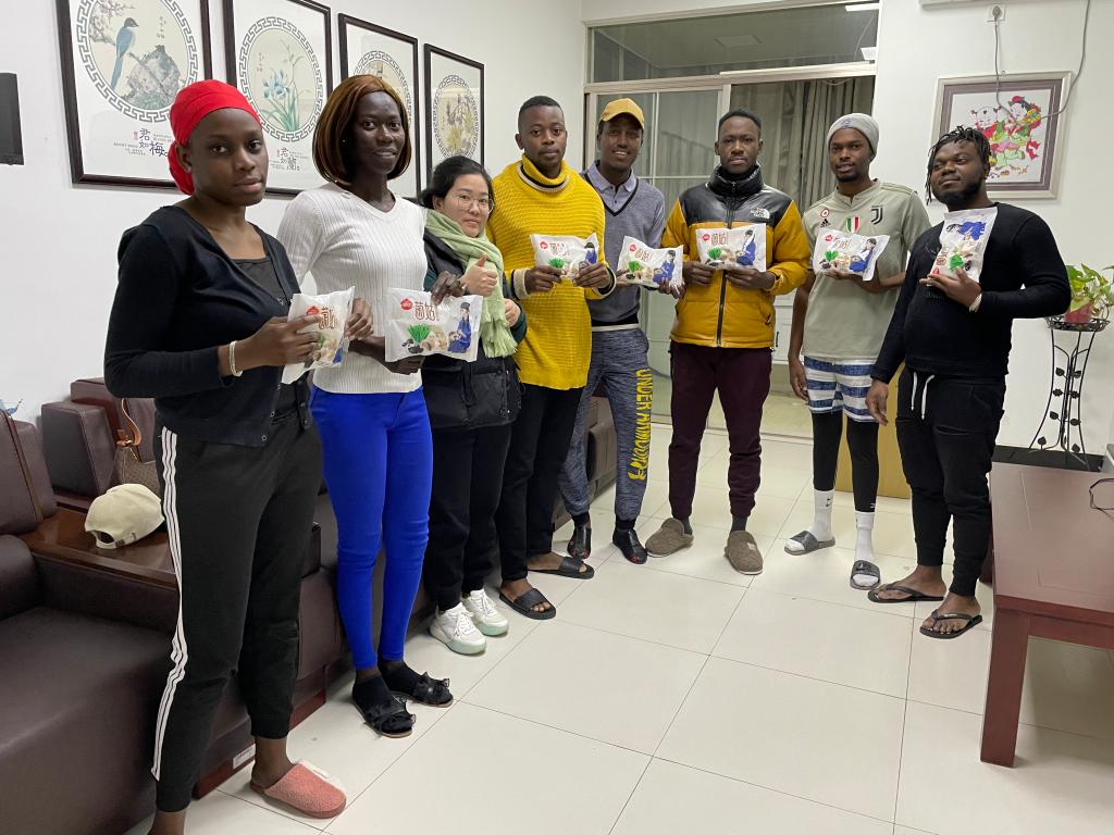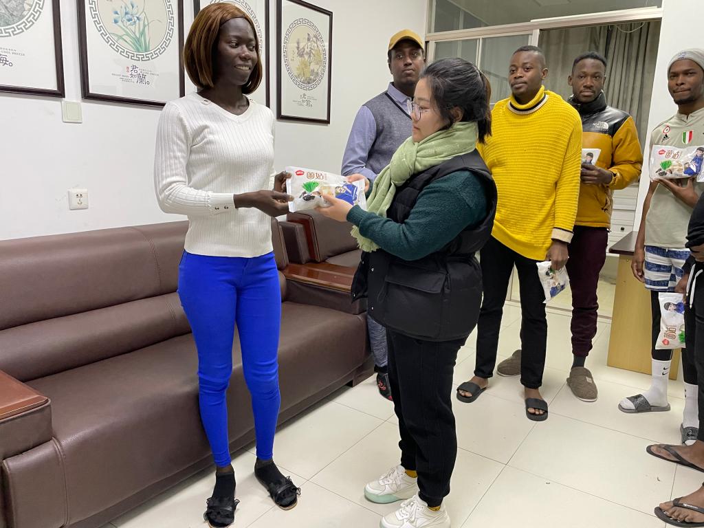 目前,除因疫情滞留在境外的留学生外,我校在校留学生共27名。这些留学生来自不同的国家,他们有不同的民族信仰和生活习惯。为了帮助留学生们更好地感知中华优秀传统文化,体会身在异国他乡的温暖,班主任汪家玲老师带着两箱水饺来到留学生公寓为大家发水饺。留学生们很高兴能够在冬至吃到来自学院老师及领导关怀的水饺,他们纷纷称赞“黄河水院是一个温暖的大家庭,我们很喜欢在这里学习。”汪家玲老师告诉大家,这些水饺不仅可以煮着吃,还可以煎着吃,还可以根据个人喜好蘸取各种调料。留学生们觉得这些吃法很有意思,他们很喜欢。
