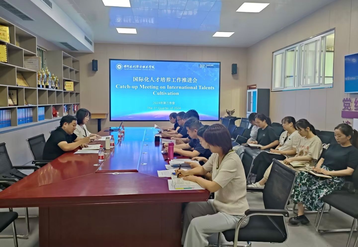 会上,对外联络与合作处副处长李名亚通报了2024年来华留学生招录情况,就留学生报到和中外合作办学项目开展等相关工作进行了安排。国际教育学院各团队负责人分别汇报了开展国际化人才培养的基本情况、迎接来华留学认证的工作准备情况、暑期国际化环境氛围打造进度,并就来华留学生在校学习和生活中的管理工作、中外合作办学项目的人才培养计划修订和外方教师授课等环节中存在的问题和原因进行了剖析。双方就下一步工作思路进行了深入探讨,就关键问题的解决办法达成了共识,理清了推进各项相关工作的实施路径和具体举措。