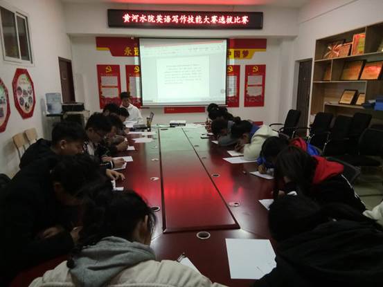 为了培养学生学习英语的兴趣,进一步提高英语写作水平。3月7日晚,国际教育学院(外语教学部)在SY5501、SY5503办公室举行2019年“黄河水院英语写作技能大赛选拔比赛”。