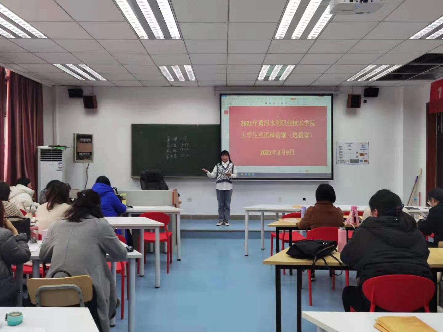 3月16日下午,举行英语辩论赛校园选拔赛在JX7401房间顺利举行。选拔赛由公共英语教研室组织,共有25名同学参加比赛选拔。比赛中同学们沉着冷静,针对抽取话题进行有条有理的叙述和表达,达到了“言之有序、言之有物、言之有情”的良好效果,学生们的优秀表现得到了现场评委老师们的肯定和赞许。